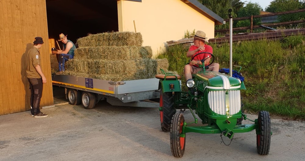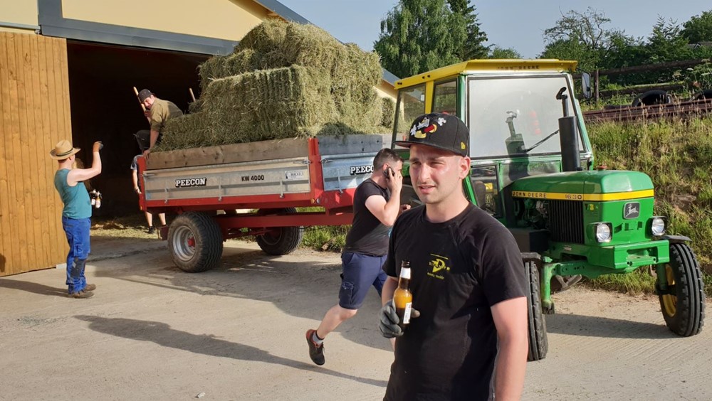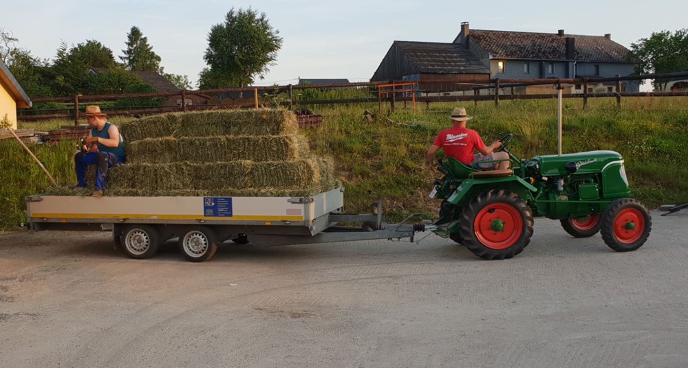Bei der Heuernte packen wieder alle an. Das macht Spaß. Danke an die vielen Helfer und das fleißige Team. Und dann mal Prost ...