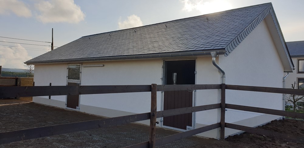 Der neuer Hengst-Stall in Weckerath ist rechtzeitig fertig geworden. Hier werden es die jungen Ponyhengste richtig gut haben. Im Stall und auf den Paddocks sowie den angrenzenden Wiesen ist für bis zu 6 Ponys Platz.