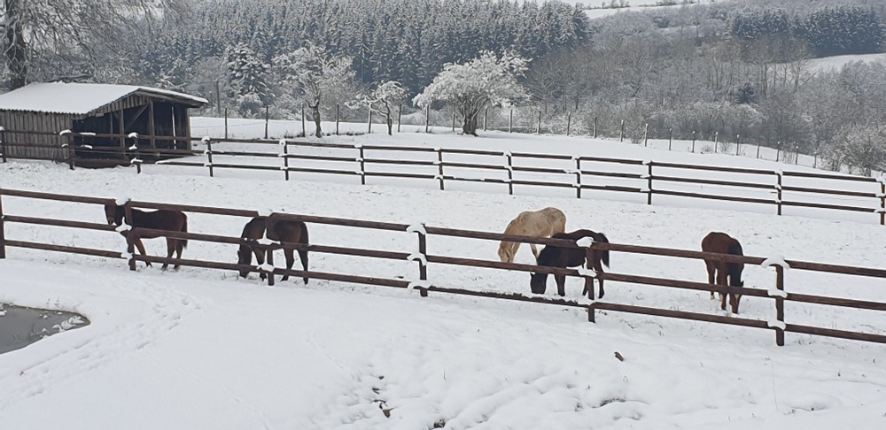 Unsere Zuchtstuten brachten dieses Jahr 5 gesunde Fohlen zur Welt. Die Herde genießt die schönen und saftigen Wiesen in der wunderschönen Natur der Eifel-Ardennen Landschaft in Lanzerath. Da freut sich das Herz des Züchters.