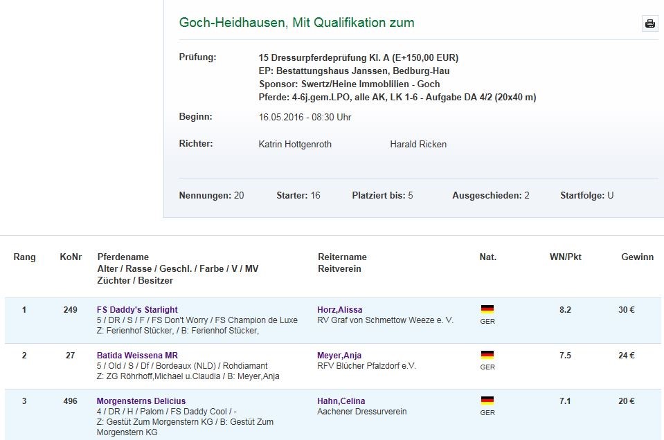 Morgenstern's Delicius erfolgreich in Goch am 16.05.16