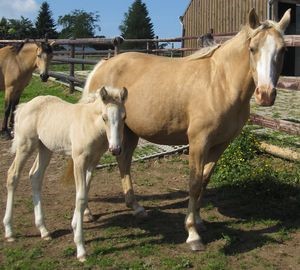 Unsere beiden Gold Hengstfohlen : Dakar (2009) von Don't Worry aus Madonna sowie Dalai (2010) von Don't Worry aus Carmelita.
