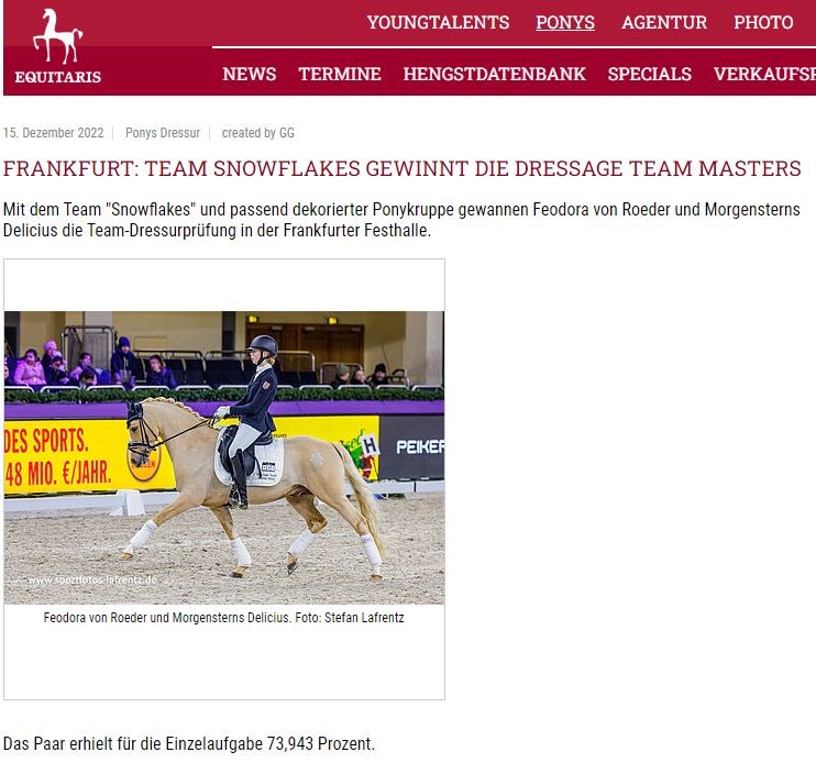 Unter der Reiterin Feodora von Roeder ist unser Ponyhengst Morgensterns Delicius weltweit die Nummer 3 bei den FEI Ponys.