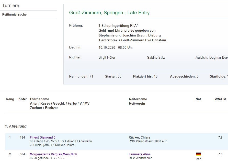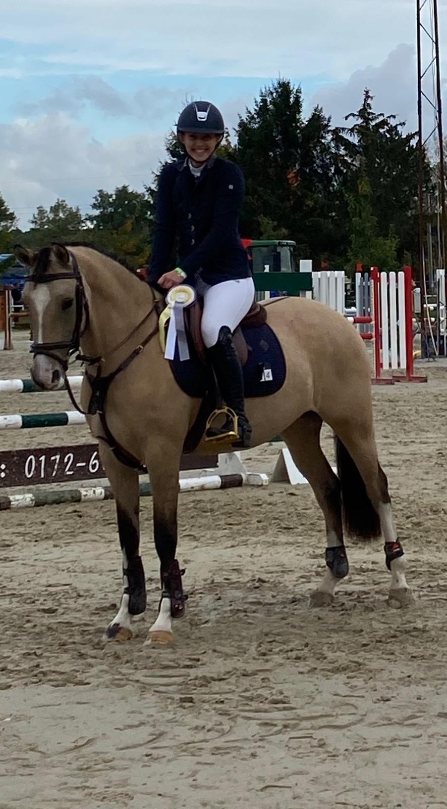 Unter der Reiterin Alina Lemmertz erzielt unsere Ponystute Morgensterns VergissMeinNicht in Gross-Zimmern am 10.10.2020 bei der Stilspringprüfung Klasse A unter 53 Startern mit der Gesamtnote 7.6 einen hervorragenden 2. Platz. Herzlichen Glückwunsch.