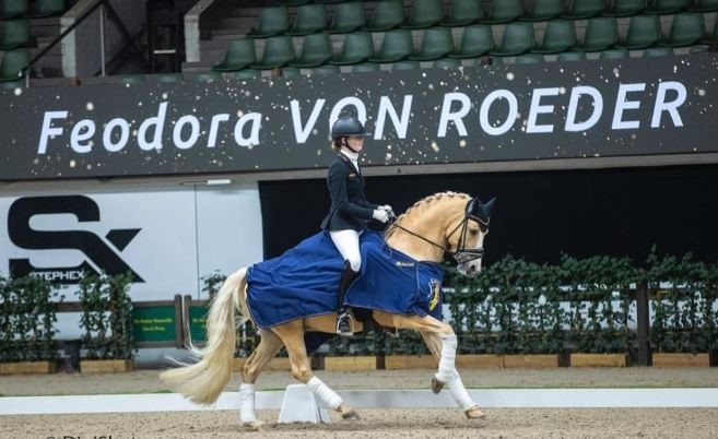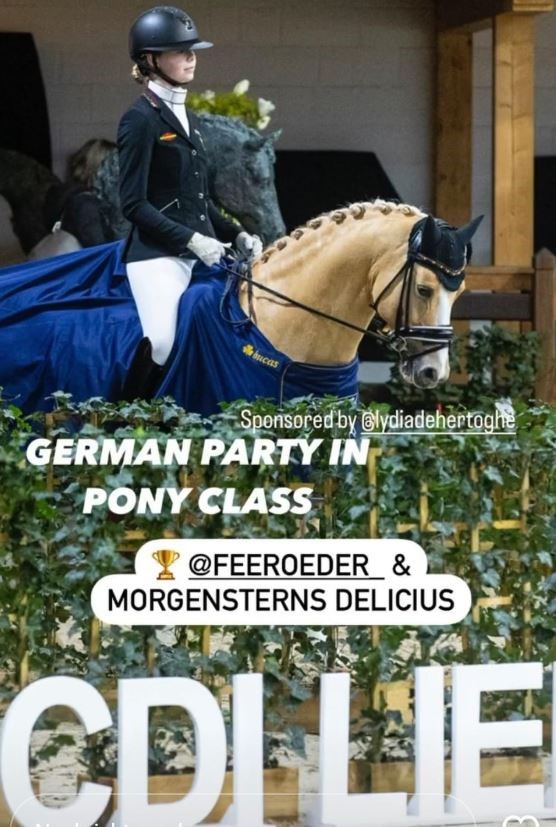 Morgensterns Delicious gewinnt souverän in Lier am 28.02.2024 unter der Reiterin Feodora von Roeder. Mit einer Note von 74,189 war dies bereits der neunte internationale Sieg dieses Erfolgspaares.