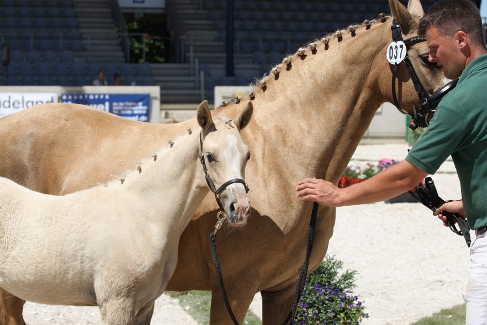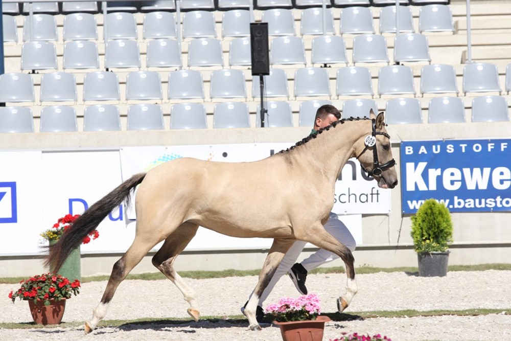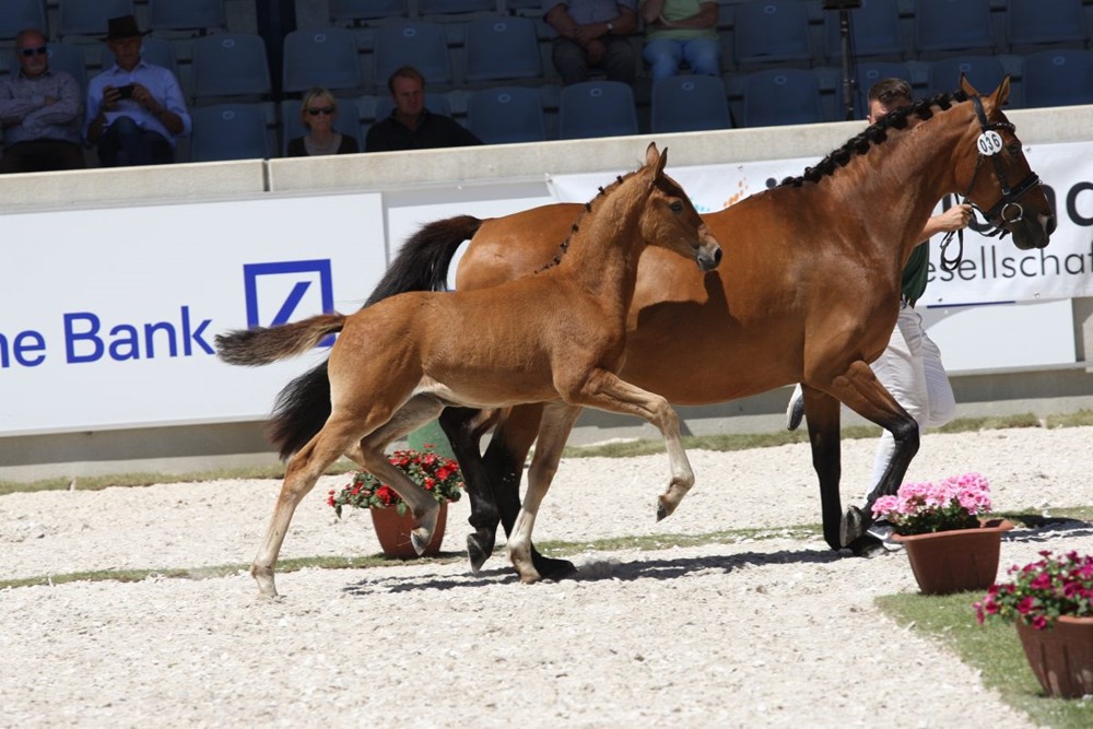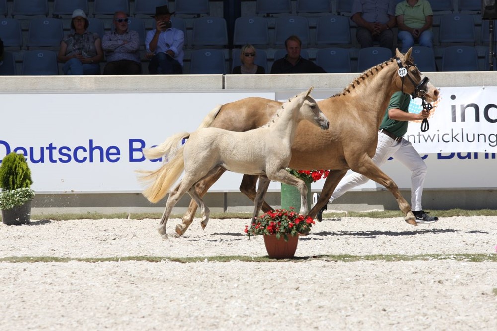 Auch unser Stutfohlen Morgensterns DalliDalli aus der Madonna von Morgensterns Dalai machte einen hervorragenden Eindruck und belegte bei den Pony Stutfohlen den 2. Platz mit der Note 1B und einer Silbermedaille.