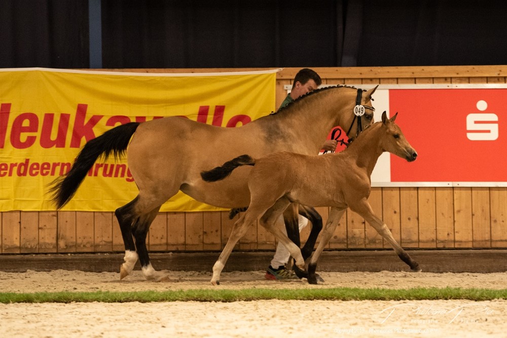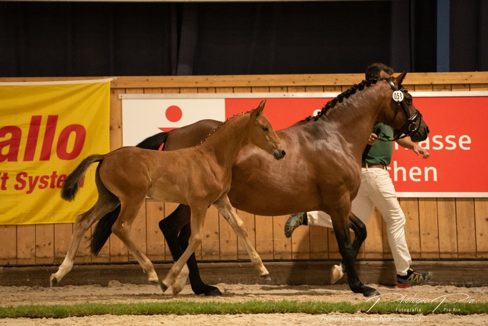 Unsere beiden Fohlen gewannen Silber. Das Stutfohlen Morgensterns Calida aus der Carmelita von FS Coer Noble belegte unter 12 Startern einen hervorragenden 2. Platz. Auch das Hengstfohlen Morgensterns Euphorio aus der Morgensterns Delphi von Steendieks Exclusiv konnte überzeugen.