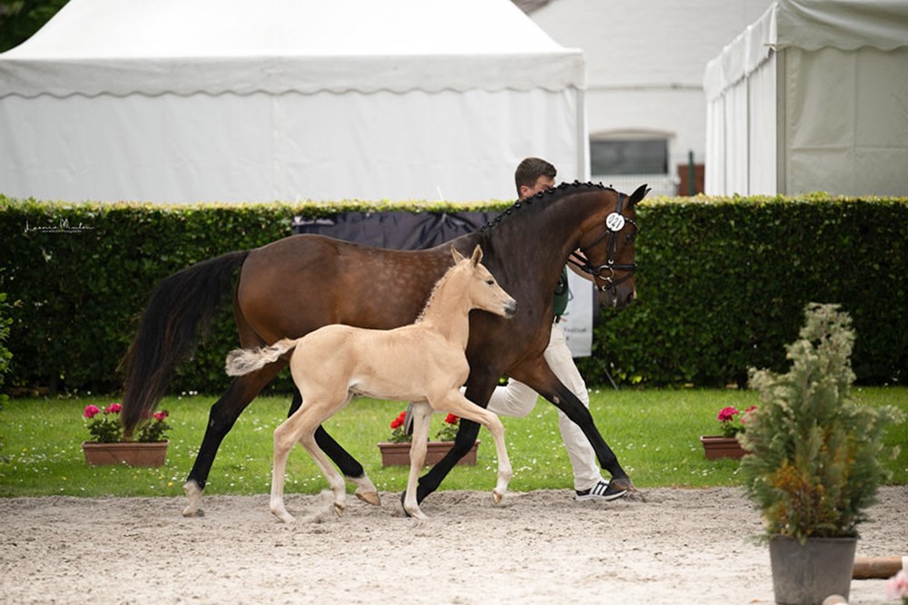 Bei der Euregio Fohlenschau in Aachen am 14.06.2024 gewann unser Hengstfohlen Morgensterns Du Fond du Coeur aus der Morgensterns Destina von Dating's Smiley A den Wettbewerb der dressur betonten Hengst-Pony-Fohlen und erhielt die Goldmedaille.