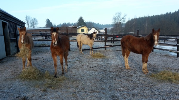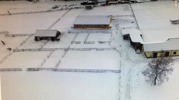 Der Januar brachte Kälte, Schnee und Eis. Tief verschneit bieten die Ställe Schutz für unsere Ponys, die sich alle bester Gesundheit erfreuen und tagsüber gerne draußen sind.