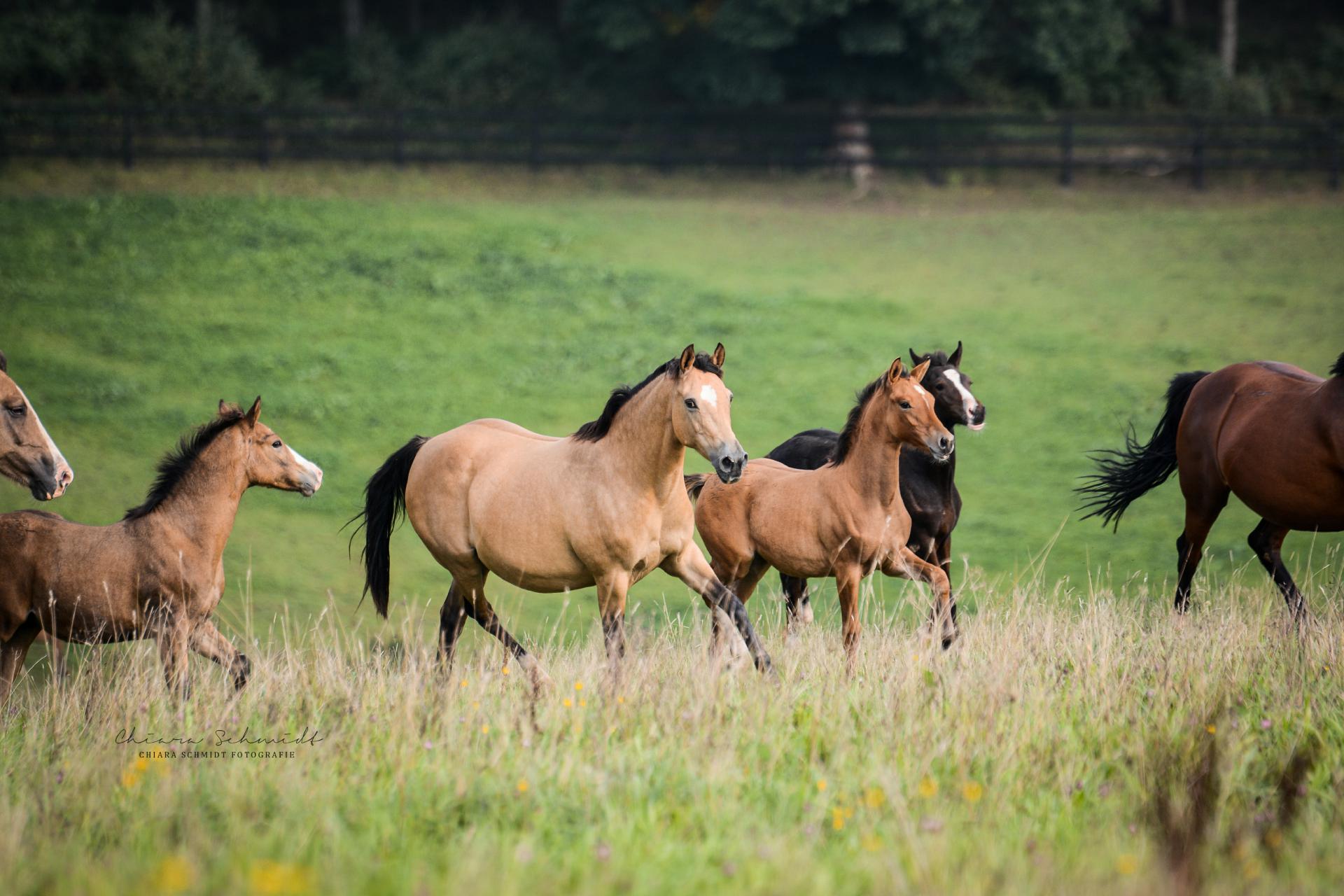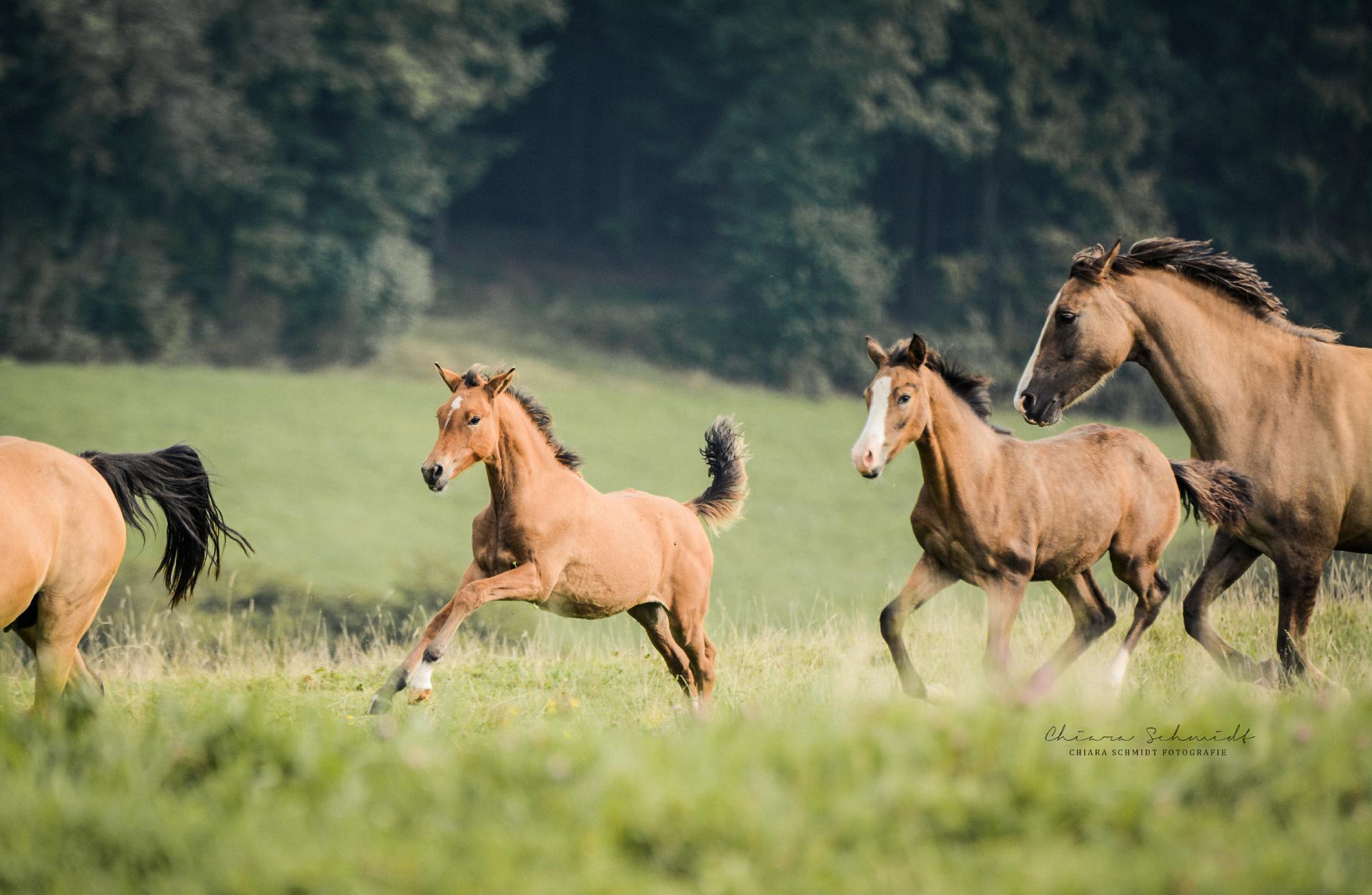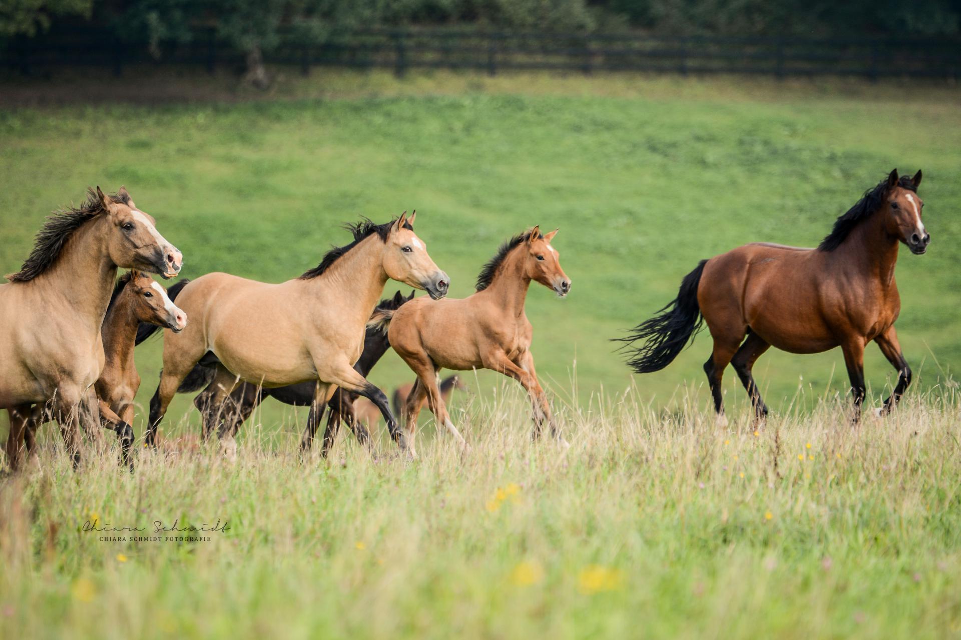 Eine glückliche Ponyherde bilden die Stuten Carmilta mit Morgensterns Dalaila, die Stute Delphi mit Morgensterns Nevio und die Stute Diadema mit Morgensterns Cheri. Unsere Ponys genießen die saftigen Wiesen und die intakte Natur. Sie haben viel Bewegung. Das sieht man Ihnen an nach dem Motto "Nur Fliegen ist schöner".