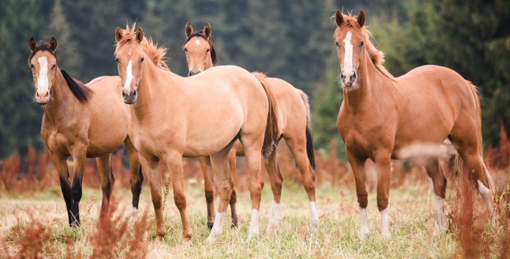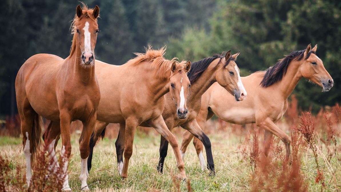 Den jungen Stuten geht es prächtig. Morgensterns Dalaila, Morgensterns Chérie, Morgensterns Noraya und Morgensterns Davida geniessen die herrliche Natur unserer Zuchtstätte.
