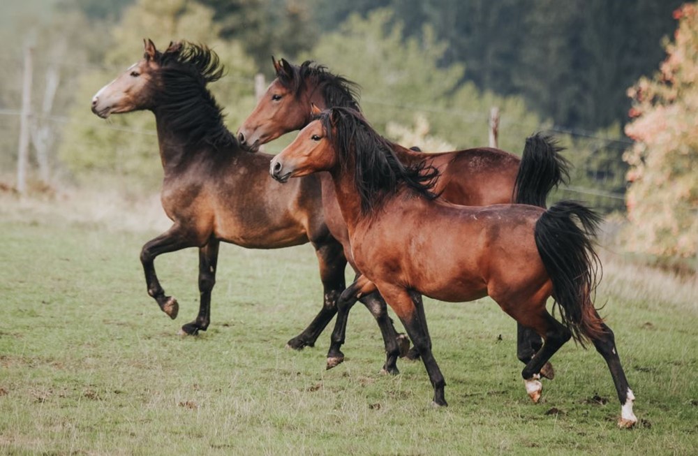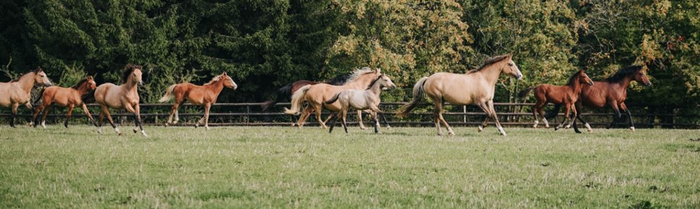 Unsere jungen Hengste (Jahrgang) Morgensterns Canossa, Morgensterns Donatello und Morgensterns Daidalos entwickeln sich prächtig. Auf den Hengstwiesen finden sie viel Auslauf, ein anspruchsvolles Gelände mit viel Auf und Ab sowie natürlich bestes Futter.