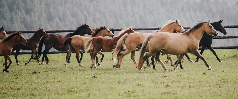 Da freut sich das Herz des Züchters. Unsere Zuchtstuten mit ihren Fohlen zeigen sich von ihrer besten Seite. Große Flächen und saftige Wiesen bieten alles, was den Ponys gut tut.