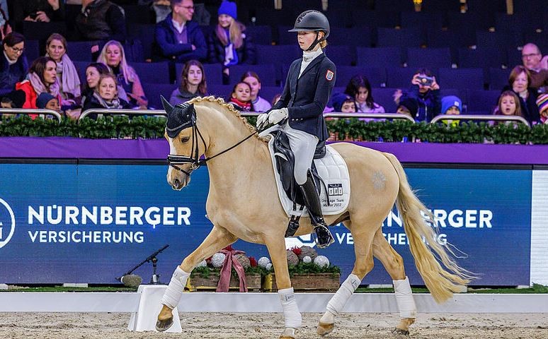 Unter der Reiterin Feodora von Roeder gewinnt Morgensterns Delicius die Dressage Team Masters in Frankfurt am 15.12.2022 mit der Gesamtnote 73.943