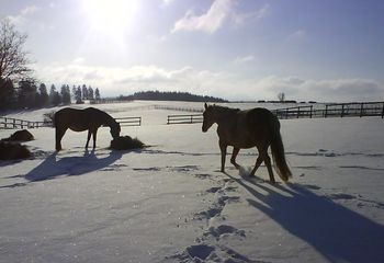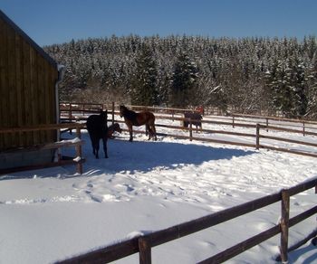 Die Zuchtstuten geniessen auch im Winter den Weidegang.